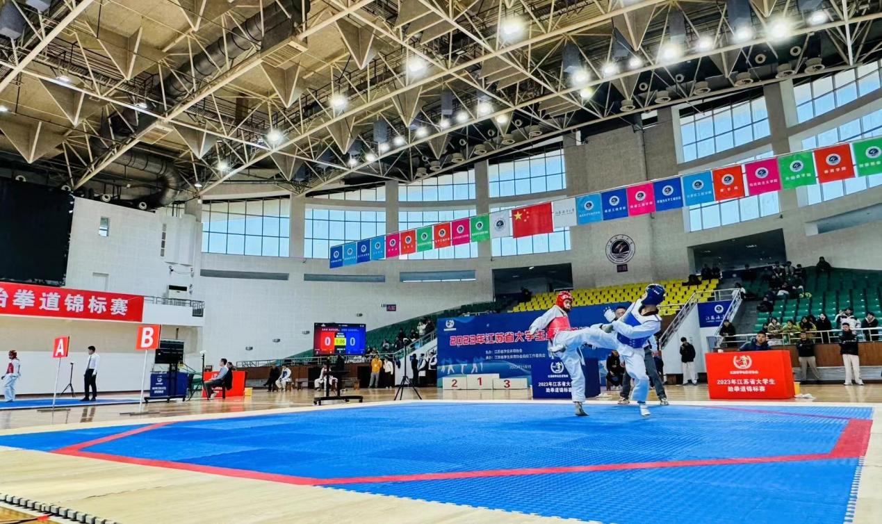 11月15日至19日,由江苏省学生体育协会主办,江苏省学生体育协会高校工作委员会、江苏海洋大学承办的2023年江苏省大学生跆拳道锦标赛在江苏海洋大学举行。本次赛事共有来自全省66所高校近681名运动员参加,南京体育学院代表队由运动训练学院20名跆拳道专项学生组成,孙尊航、苗绿峰两位老师担任教练,经过四天的激烈角逐,我校队员敢打敢拼、顽强拼搏,最终斩获了9金7银3铜,并获得男子团体第一名、女子团体第二名以及团体总分第一名的优异成绩。