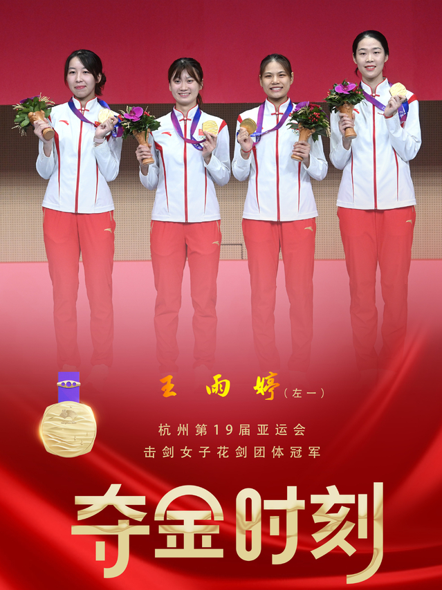在9月28日下午进行的女子花剑半决赛中,王雨婷和队友顽强拼搏,以45比29的绝对优势战胜日本队,顺利晋级决赛。在晚上六点三十五进行的决赛中,面对强劲对手韩国队,王雨婷与队友团结协作,以34:31较大的优势顺利战胜韩国队夺冠。这是中国击剑队在本届亚运会上获得的第二枚金牌。